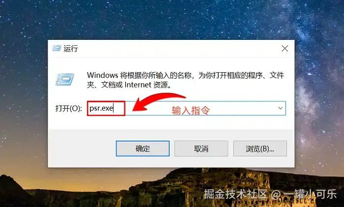 步骤1:按下快捷键 “Win+R” ,打开运行窗口,输入字母 “psr.exe” 打开步骤记录器。
