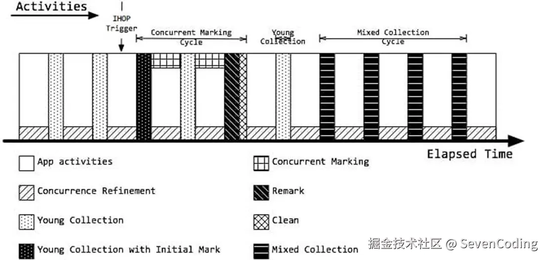 由上述可知,G1的收集都是根据CSet进行操作的,年轻代收集与混合收集没有明显的不同,最大的区别在于两种收集的触发条件。
