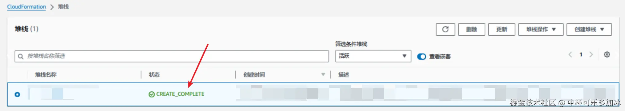 CREATE_COMPLETE 状态代码表示堆栈创建过程已完成: