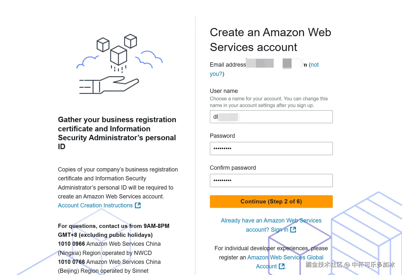 在开始部署之前,需要准备一个亚马逊云科技账号,首先进入[亚马逊云科技]官网,点击注册账号,输入邮箱并验证。