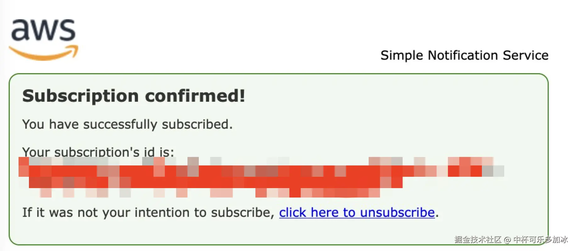 堆栈创建完毕后,会在你注册邮箱中发送一个订阅邮件,需要点击确认。