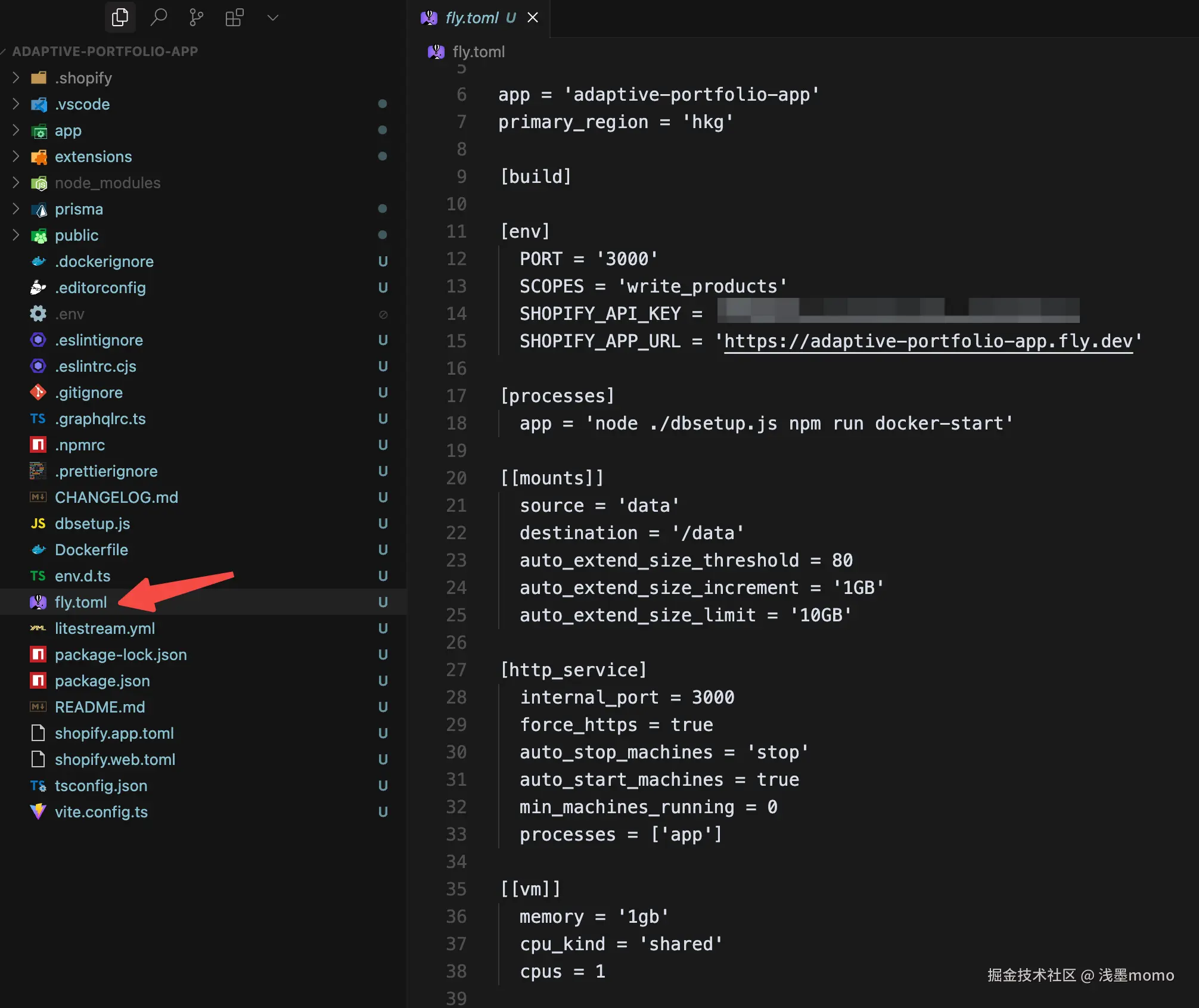 这时会在我们项目的根目录下生成一个fly.toml的配置文件,里面配置了我们部署到fly.io的配置信息,包括: