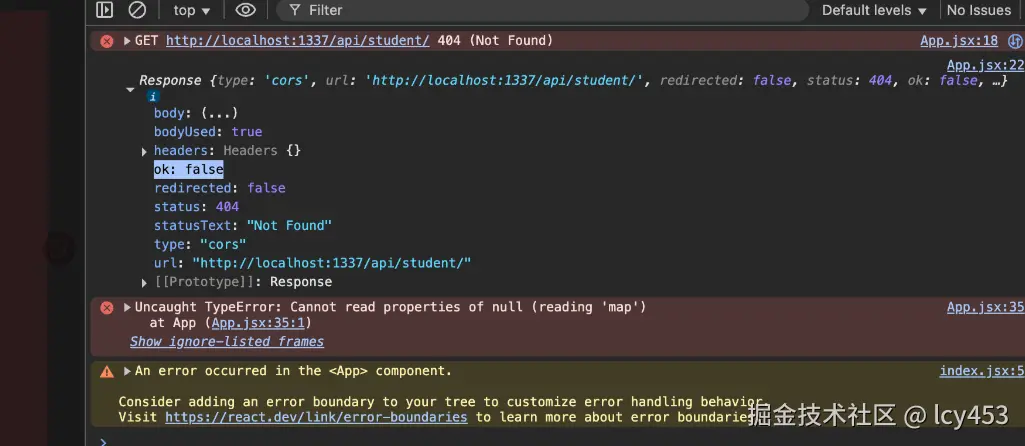 返回404但是问题是map也就是map方法错了所以请求整个过程还是执行了?这很明显不对。但是我们看到ok变为false,那么我们就可以去截断这个请求过程。而且statusText都变了。