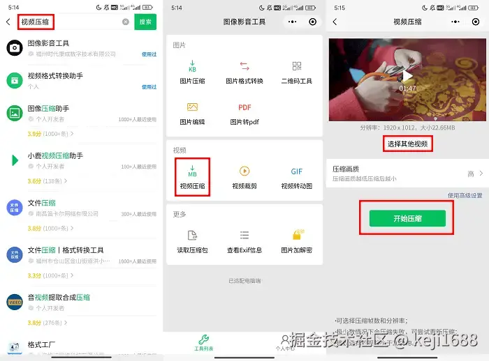 微信小程序的玩法越来越多样化了,这可不,现在连视频压缩都可以轻松实现了。对于手机端用户而言,最大的方便就是不需要额外下载手机压缩软件,只要保证网络畅通,一个小程序就可以轻松搞定视频文件压缩。