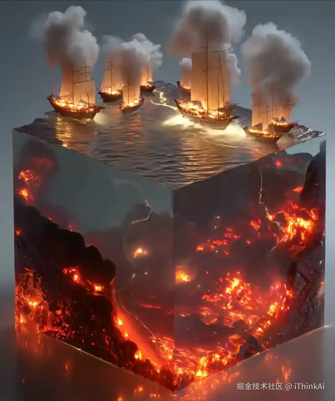 在优化后的图片上直接触发视频生成插件,选用豆包视频插件,设置10秒时长生成动态效果,实时预览岩浆流动、海浪翻涌等画面。