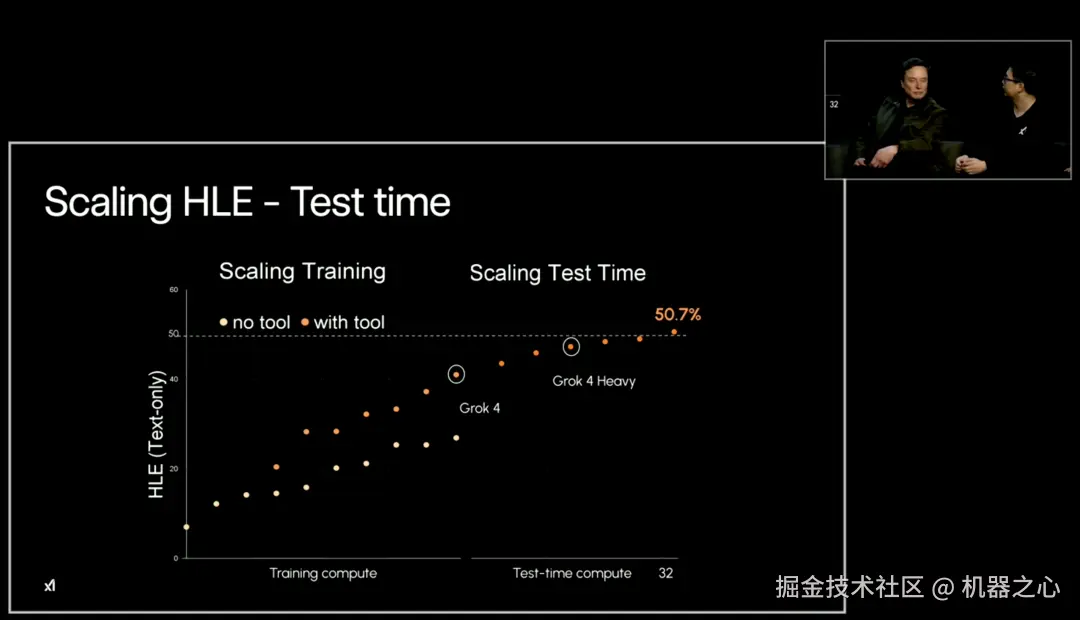 马斯克表示,Grok 4 每次都能在 SAT 考试(美国高考)中获得满分,无需事先查看题目,它也可以做到 GRE 任何学科接近满分,超过了全世界所有研究生的水平。Grok 4 最强大的地方是其推理能力,它已经实现了超越人类的推理水平。