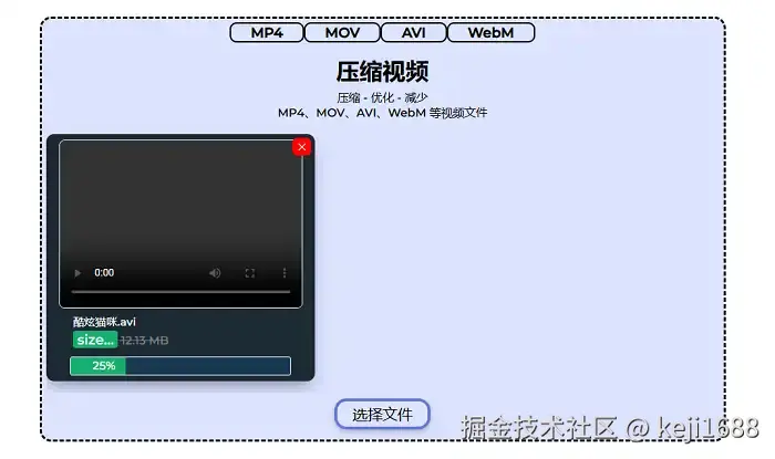 我们也可以使用freecompress进行视频文件的压缩处理工具哦。只不过它的压缩速度确实并不理想,小编压缩一个比较小的视频文件都需要等上老半天,而且该产品只能够转换mp4、mov、avi|、webm共4种格式的文件,总体而言,这款网页工具的表现是比较一般的。