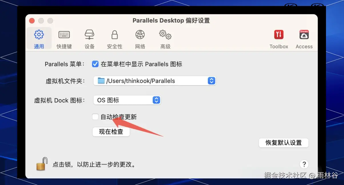 首先,点击位于界面左上角的菜单,选择“Parallels Desktop”->“偏好设置”。在偏好设置中,找到并关闭自动更新选项。