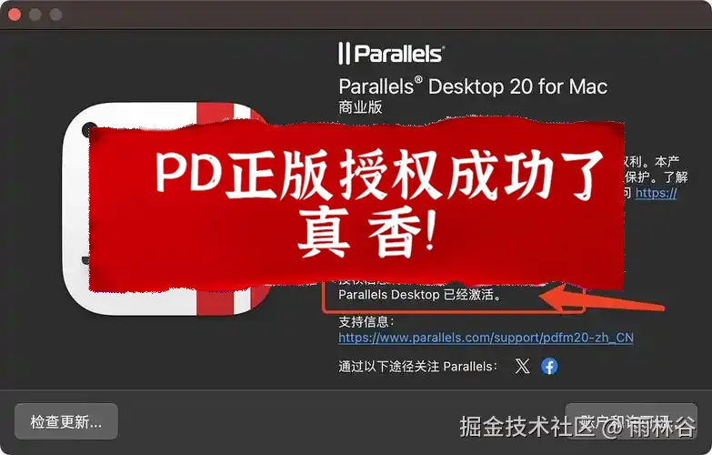 若看到“Parallels Desktop 已激活”的提示,则表明虚拟机已成功激活。