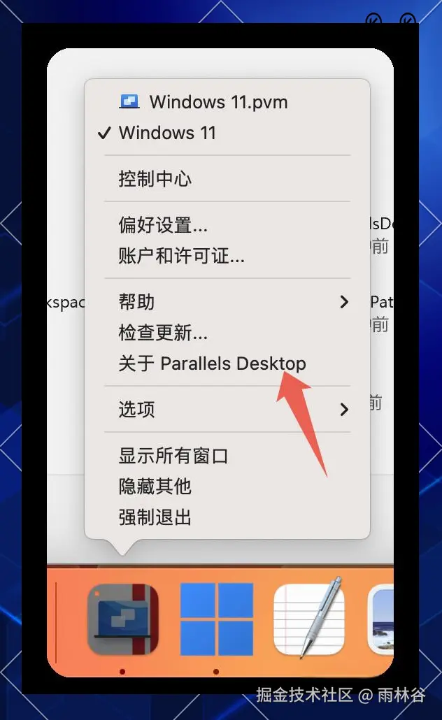 启动 Parallels Desktop 后,请点击位于界面左上角的菜单,依次选择“Parallels Desktop” -> “关于 Parallels Desktop” -> “授权信息”。