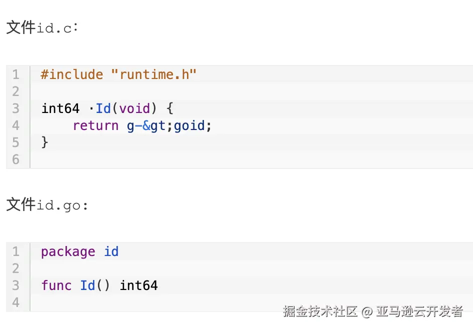 - 通过 CGO 获取 goroutine id(如下图),缺点是编译变慢,构建过程变复杂,跨平台编译能力丧失,失去了 Go 的工具生态,性能问题也无法避免。