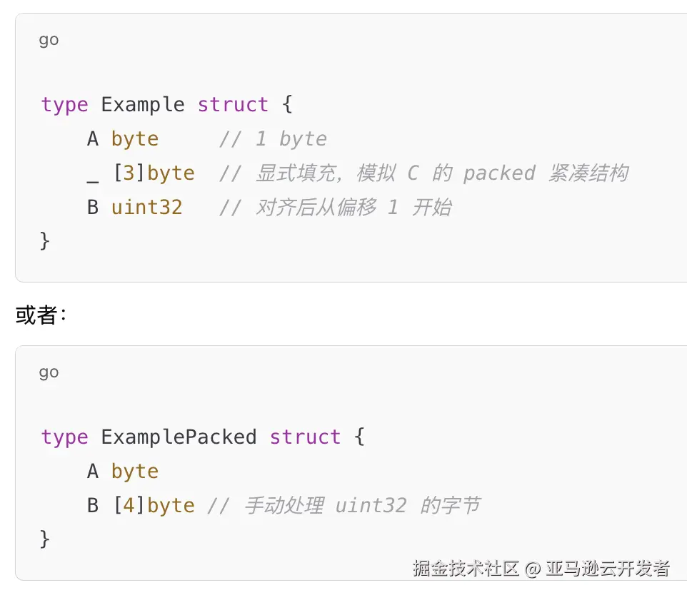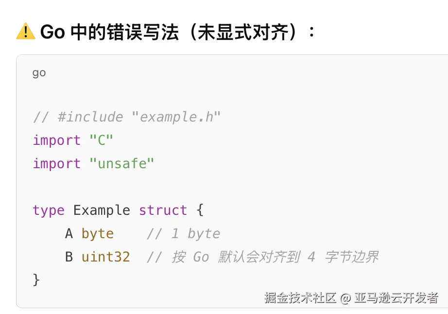 2、此外如果结构体要存到文件、数据库、或通过网络传输,不一致的字段偏移会导致数据解释错误。