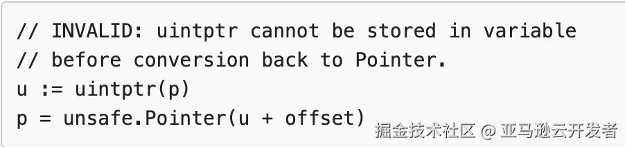 如果必须要使用 unsafe.Pointer,我们推荐以下几种安全用法: