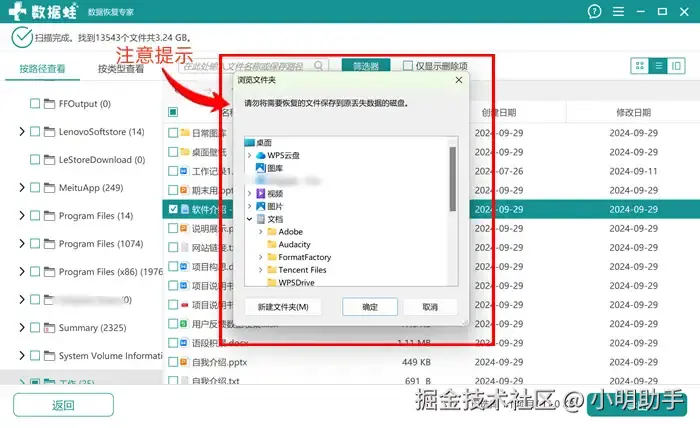 步骤3: 最后别忘了导出文件还需要选择恢复后保存的位置。