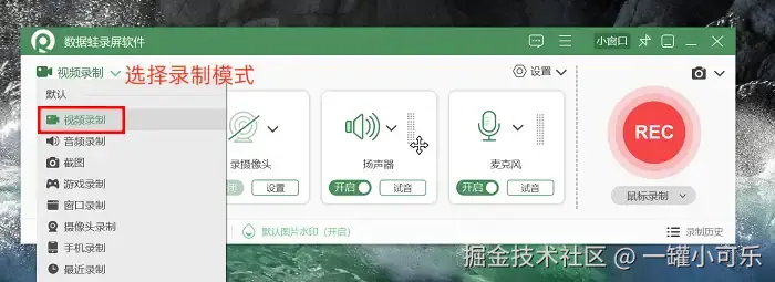 步骤1:点击启动数据 蛙录屏软件,然后找到需要的录制模式。软件有音频录制模式、窗口录制模式、视频录制模式等。本文以 “视频录制” 模式为例。