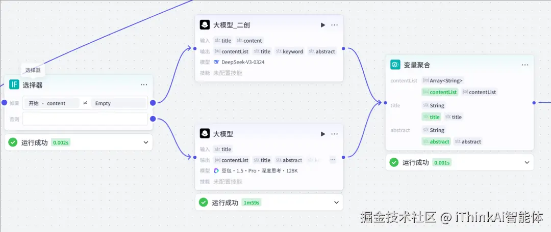 通过分支逻辑实现自动创作与人工优化双通道,大模型输出符合知识传播逻辑的完整文 案。