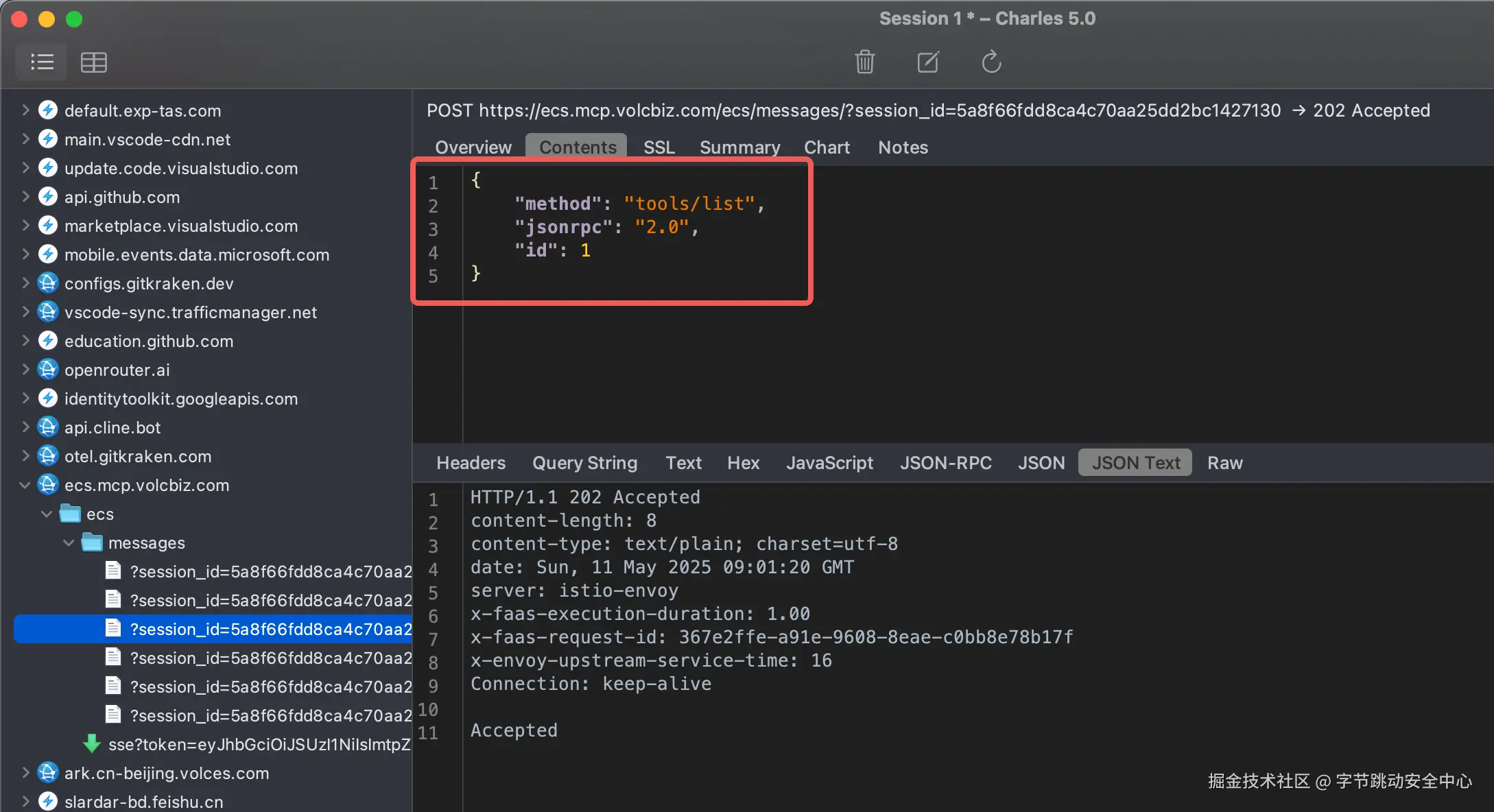 本节以火山引擎ECS服务的MCP Server与Client交互为例,对协议的全流程进行分析。