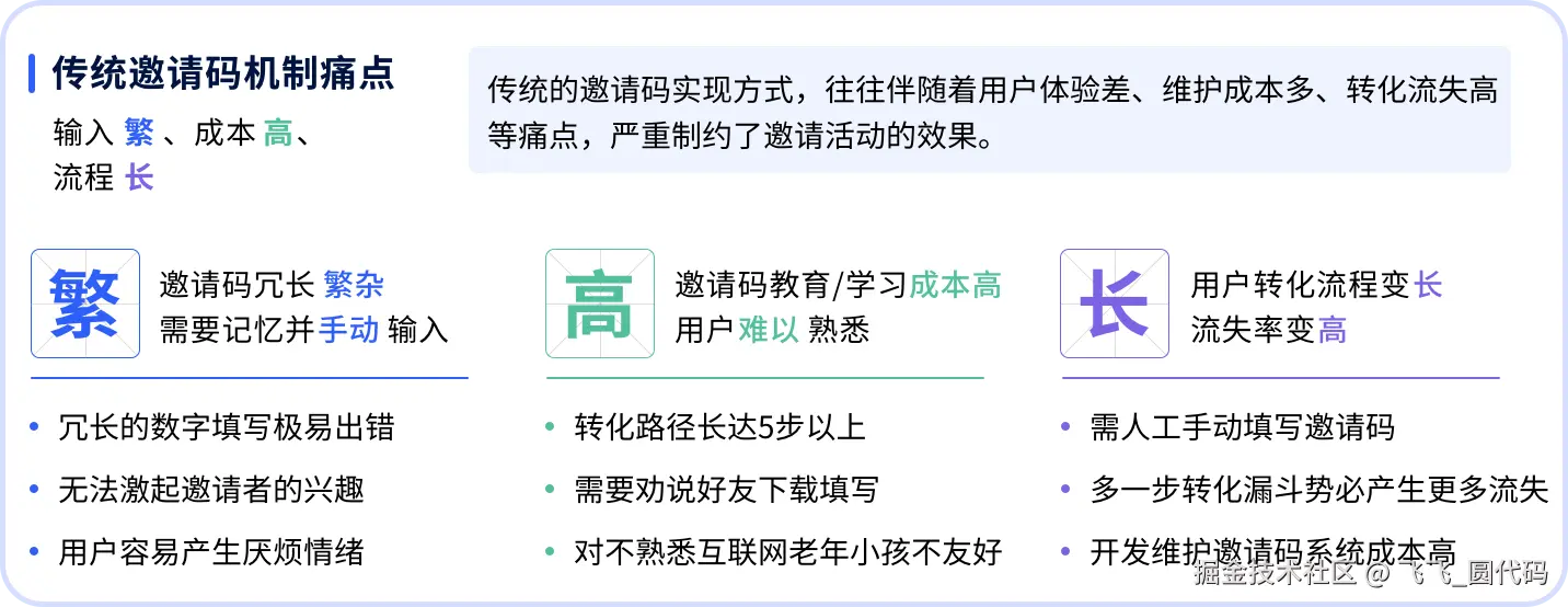 邀请机制是App用户增长和裂变营销中非常重要且必不可少的一种推广模式,而邀请码则充当着识别邀请来源、关联邀请关系、触发奖励机制的关键标识。然而,传统的邀请码实现方式,往往伴随着用户体验差、维护成本多、转化流失高等痛点,严重制约了邀请活动的效果。