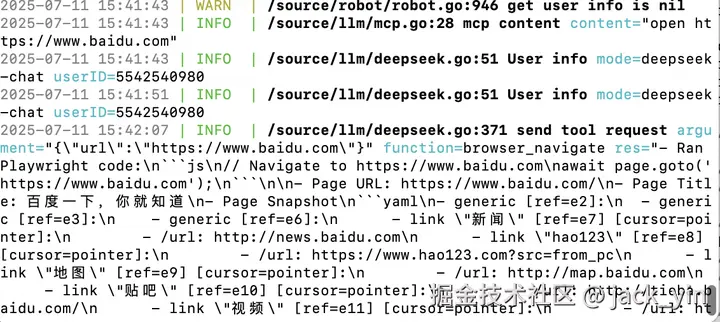 在这里,你可以清晰地看到 Bot 调用 MCP 服务的记录,以及其他重要的事件日志。