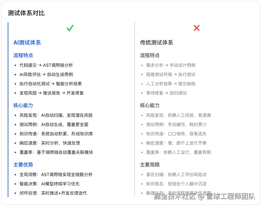 通过这套流程,AI测试到底强在哪儿?我们不妨来一场“传统 vs 智能”的全面对比,看看这场测试领域的升级换代,究竟带来了哪些质的飞跃。