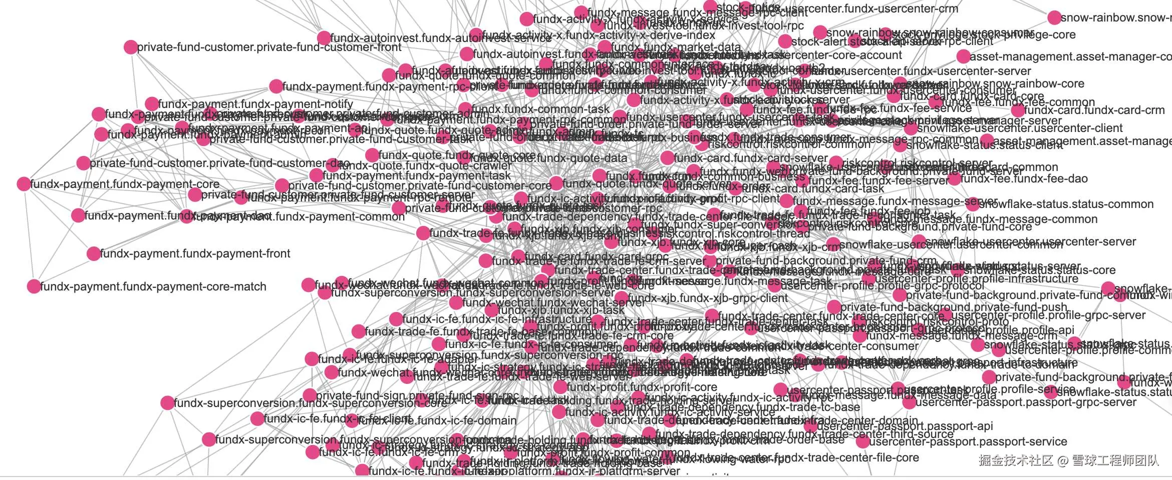 现在,我们已经拥有了一张既清晰又高效的“城市地图”。但这还不是终点,它的真正价值,在于它能为代码治理带来哪些改变呢。我们先看一张图,它是通过AST调用链生成的一个具体实例,以抽象图的形式直观展示了服务内部及服务之间的调用关系,揭示了系统架构中错综复杂的脉络和依赖。这张图表不仅是对现有体系的一次微观审视,更是迈向全面理解与优化代码结构的重要一步。