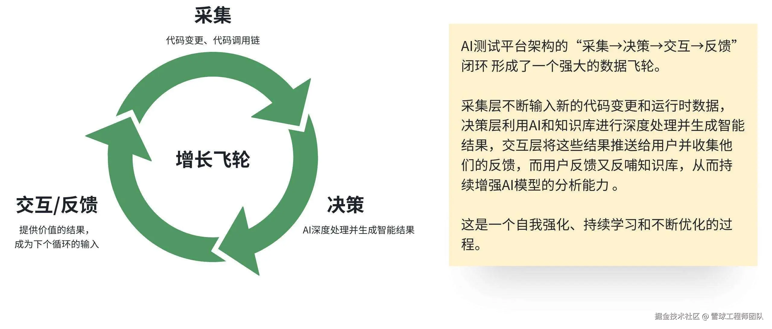 一个好的 AI 系统不是一成不变的,它需要不断学习和进步。我们设计了“反馈闭环”机制,让开发和测试人员的经验能够反哺 AI 模型。这就形成了一个良性循环: