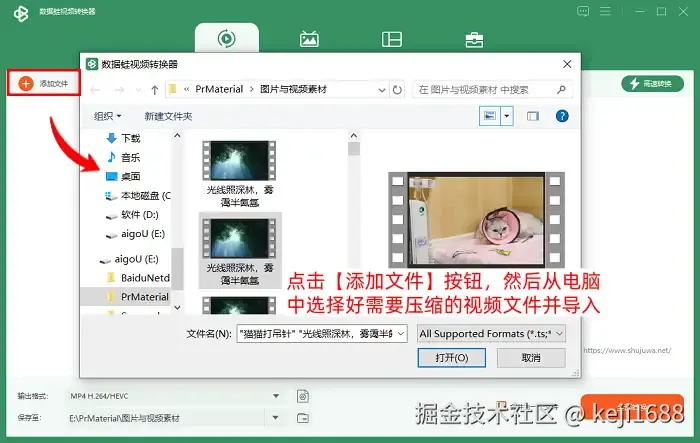 步骤1:点击进入数据蛙视频转换器,在主页面之中,我们可以阅读新手教程,熟悉相关的操作步骤之后,点击【添加文件】按钮,然后从电脑的文件夹之中选择需要压缩的视频文件并导入进来。