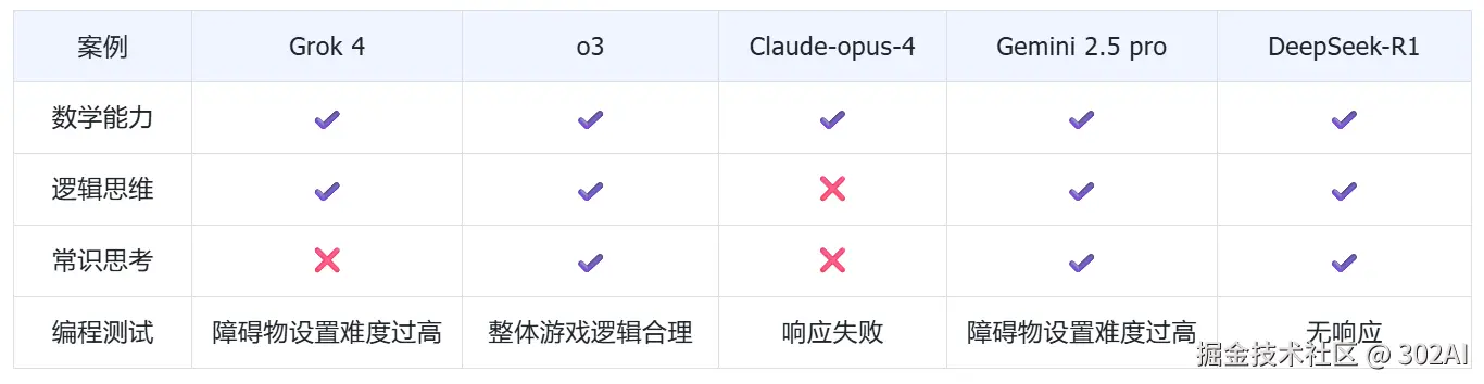 面对如此强大的新晋挑战者,302.AI 团队自然不会错过。为了第一时间验证 Grok 4 的真实实力及其在实际应用中的表现,我们已完成了 Grok 4 模型的接入工作。今天将带来一场聚焦 Grok 4 的实测对比,参与此次对决的选手包括:Gemini 2.5 Pro、Claude-opus-4、o3 以及 DeepSeek-R1。究竟 Grok 4 能否如其所言,真正改写 AI 性能的定义?我们拭目以待。