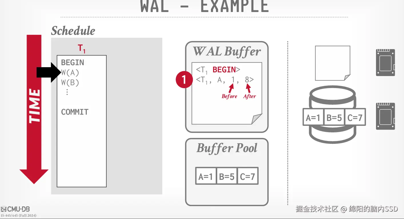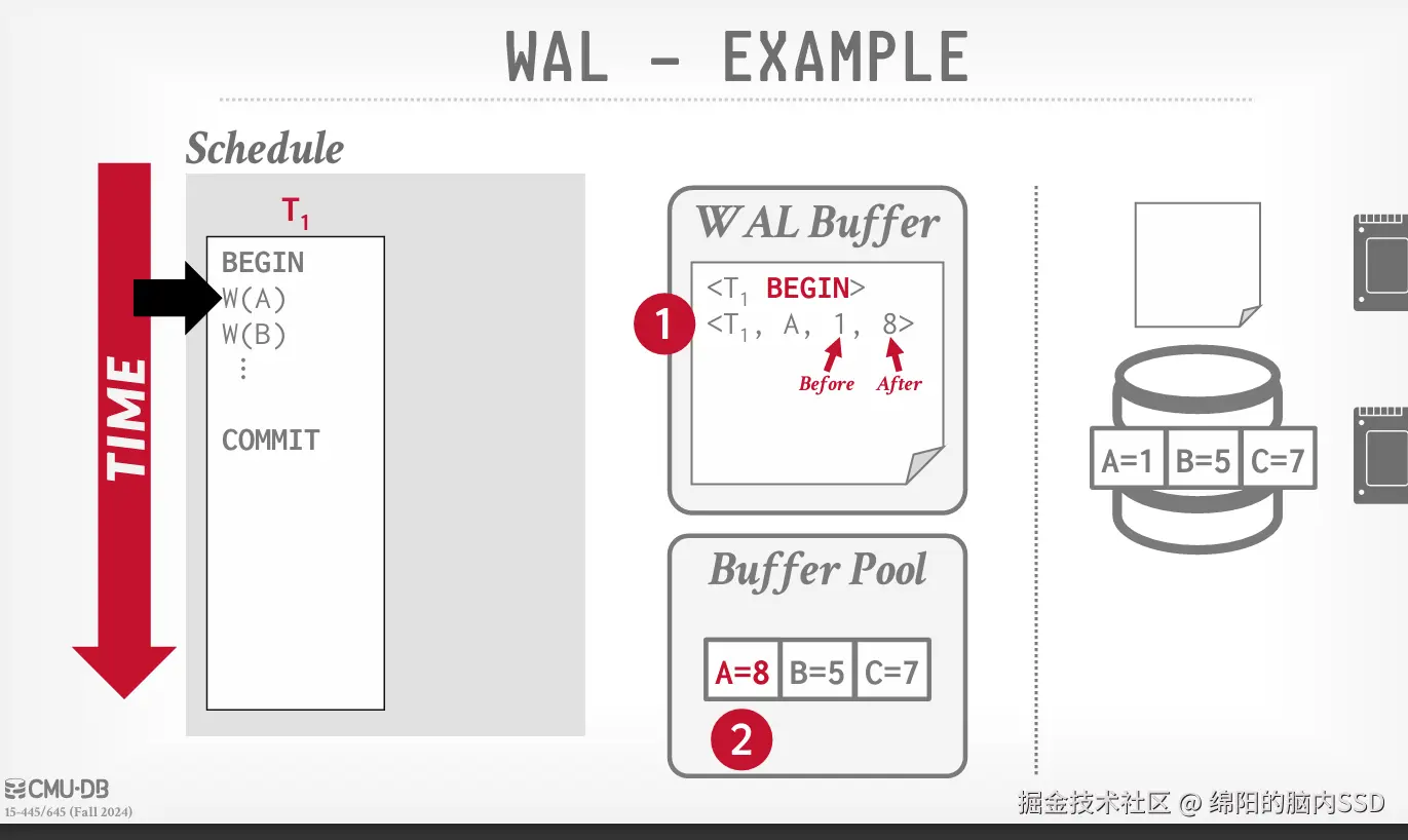 这样当BufferPool驱逐页面时, 他就可以根据日志记录看一下这个记录, 在磁盘上是安全的, 这个记录在磁盘上是不安全的。
