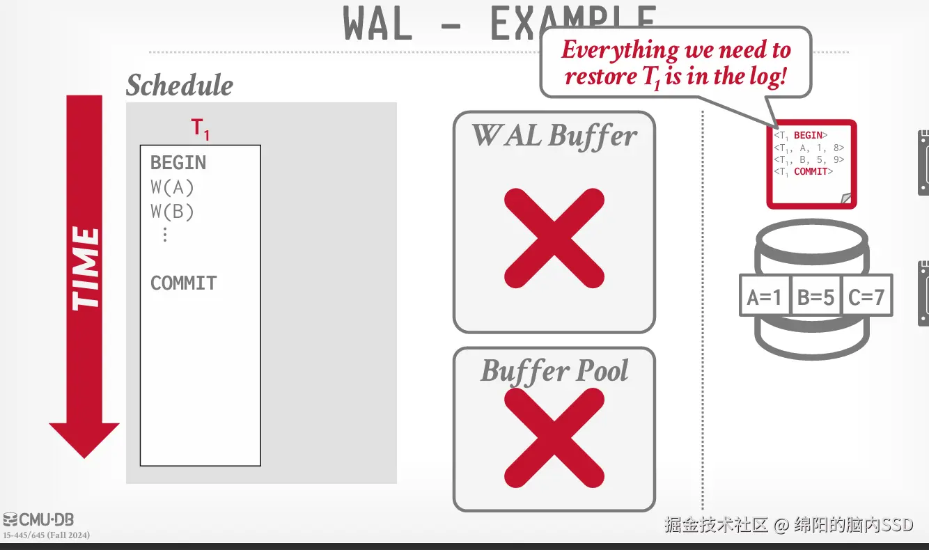 但是我们需要的所有信息已经在磁盘上, 我们重新执行一遍WAL Buffer即可, 就相当于重新执行一遍事务。