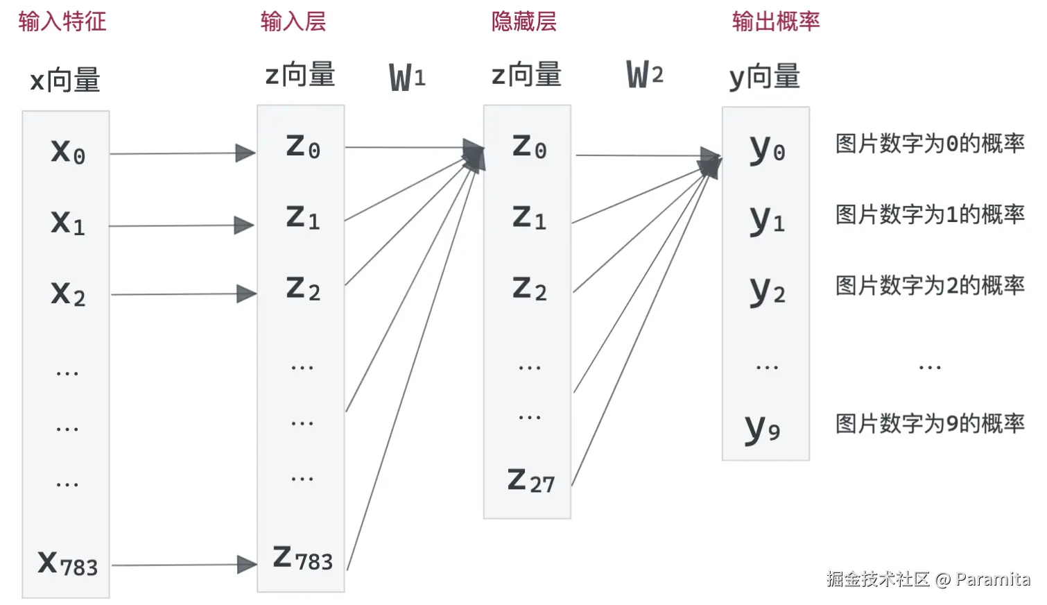 我们的目标就是通过机器学习来找到最优的参数 ,这些参数包括了所有层之间的权重和偏置,它们决定了模型对不同特征的重视程度以及最终的输出形式。