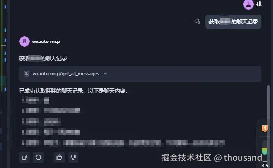 wxauto-mcp是一个基于微信自动化的MCP服务器(用python编写),用于与微信客户端交互。 该服务器利用wxauto库实现微信消息的发送和接收功能,使大语言模型能够通过wxauto与微信进行交互。 wxauto-mcp项目地址(github.com/barantt/wxa…)
