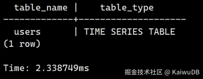 这里建库的时候要有 TS 的声明:CREATE TS DATABASE ts_db;
