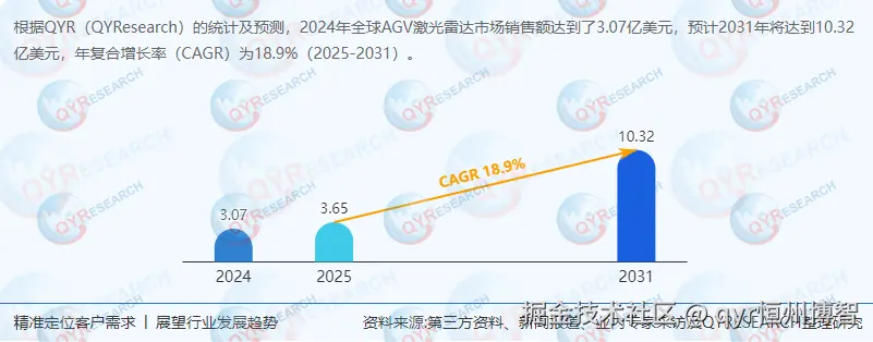 2024年全球AGV激光雷达市场规模达3.07亿美元,同比增长24.3%,主要受以下因素推动:
