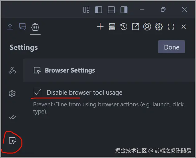 做好上述步骤后,别急,把浏览器设置打钩,禁用 (我也不知道为啥,kimi官方文档说的)。