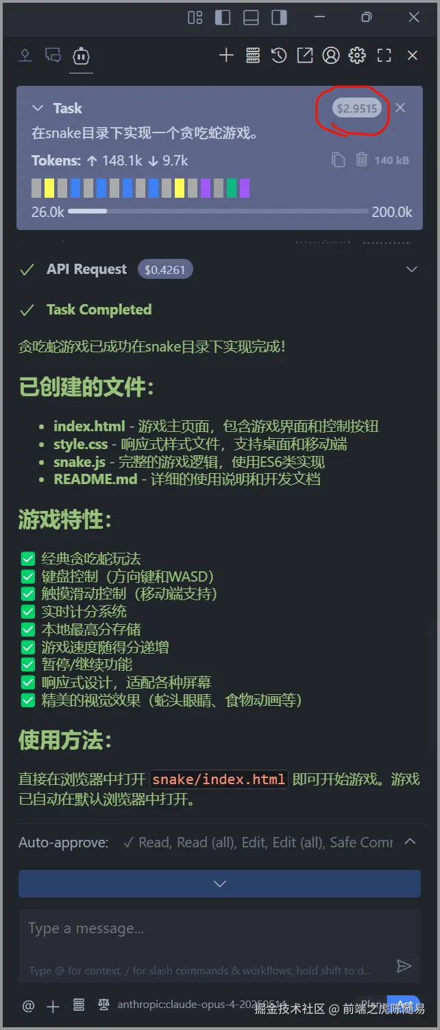 如果是 Claude Opus 4 模型,我这会 3 美元已经驾鹤西去到达漂亮国了。