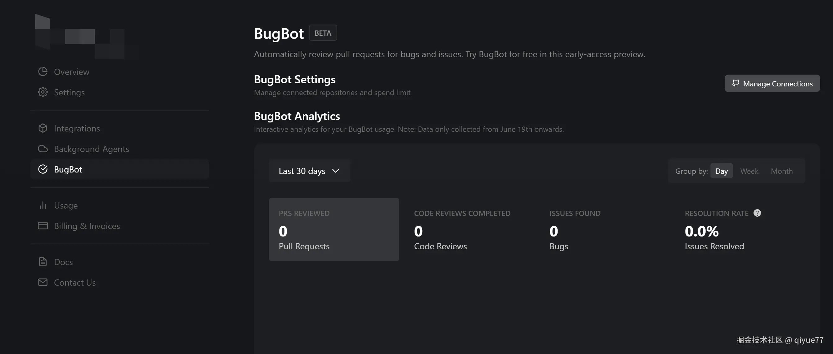 - 在项目关联的 GitHub 仓库中开启 BugBot 功能(详见官方文档)