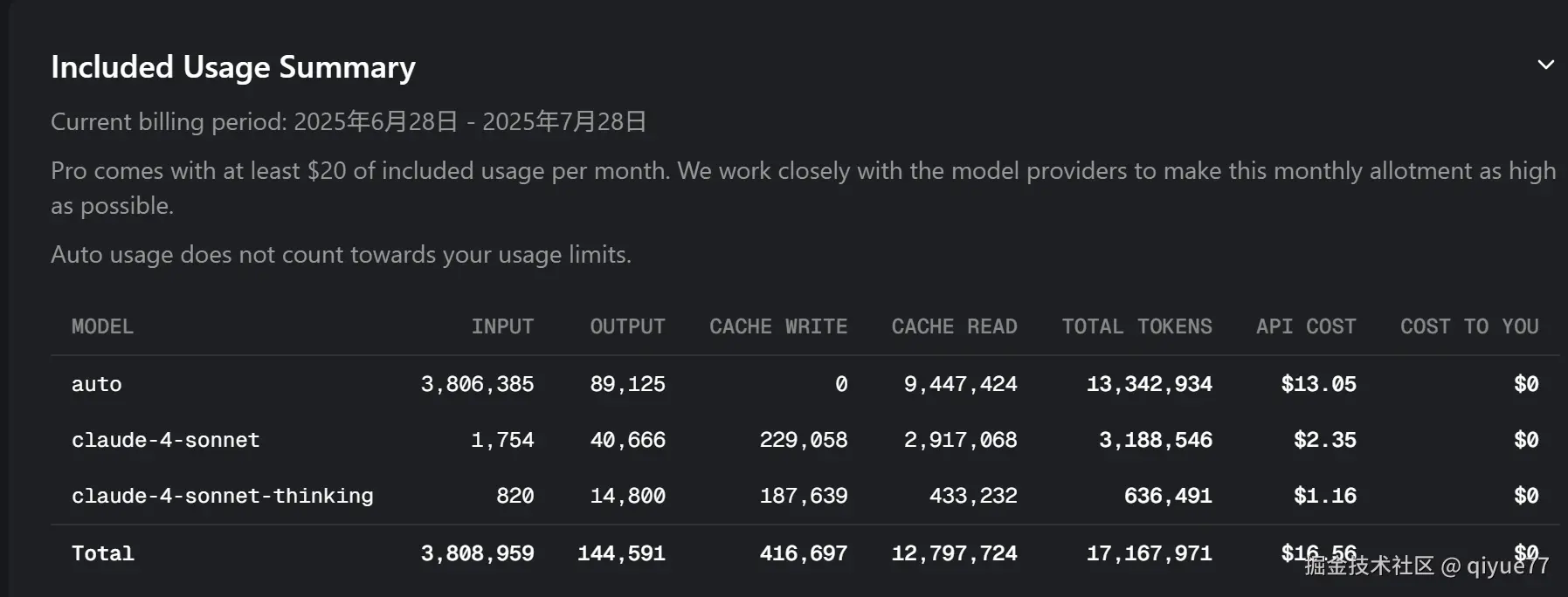 每个计划都包含按 API 价格计算的每月代理使用预算。例如,Pro 包括每月至少 20 USD 的使用费。每条代理消息都根据模型的 API 定价从此预算中扣除。