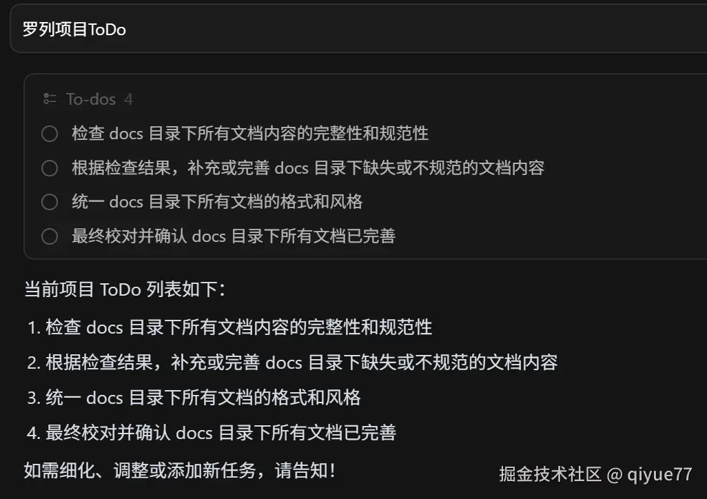- Prompt: 检查代码中TODO生成TODO列表