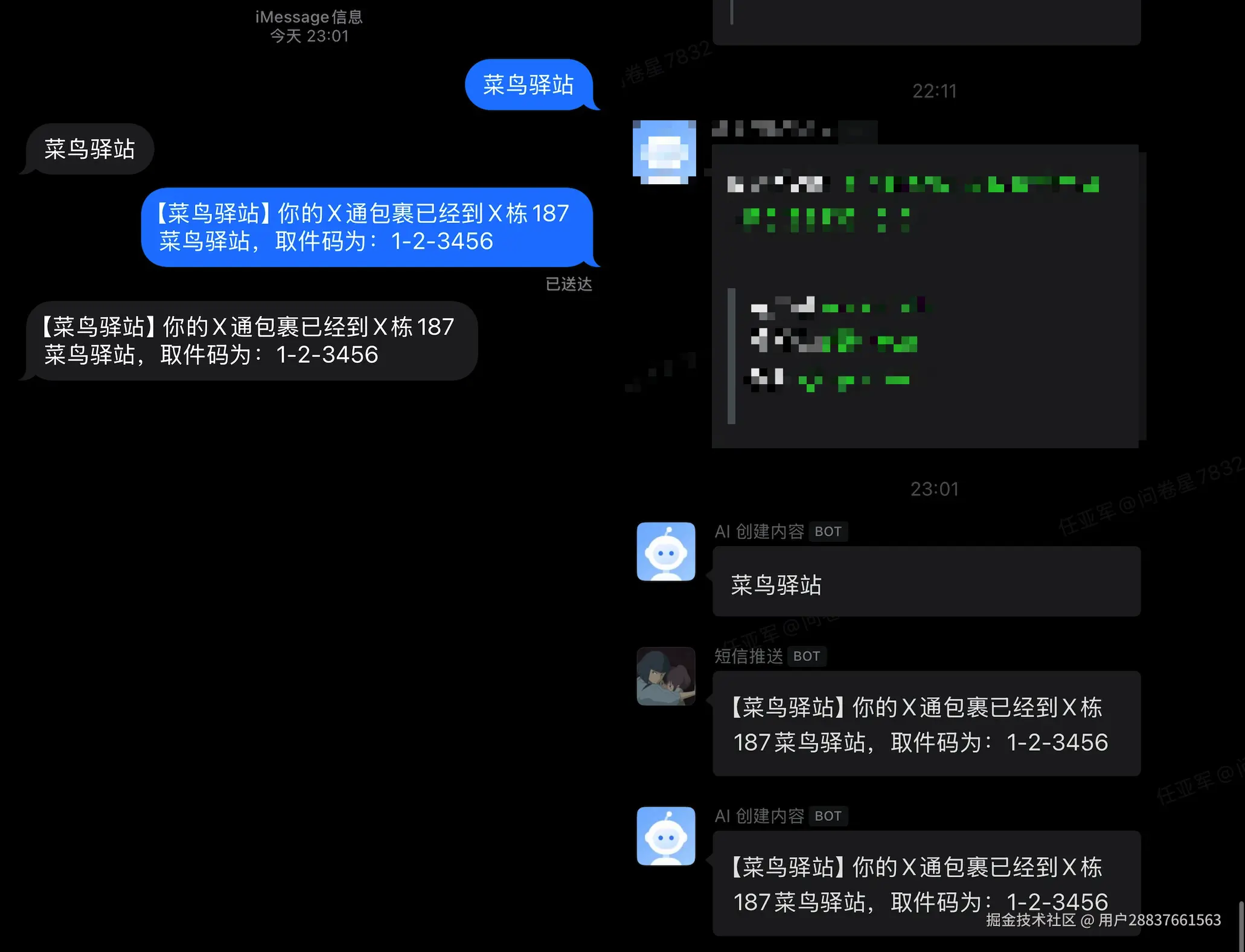 我们在工作中,有的时候需要将收到的验证码分享给其他同事。比如: