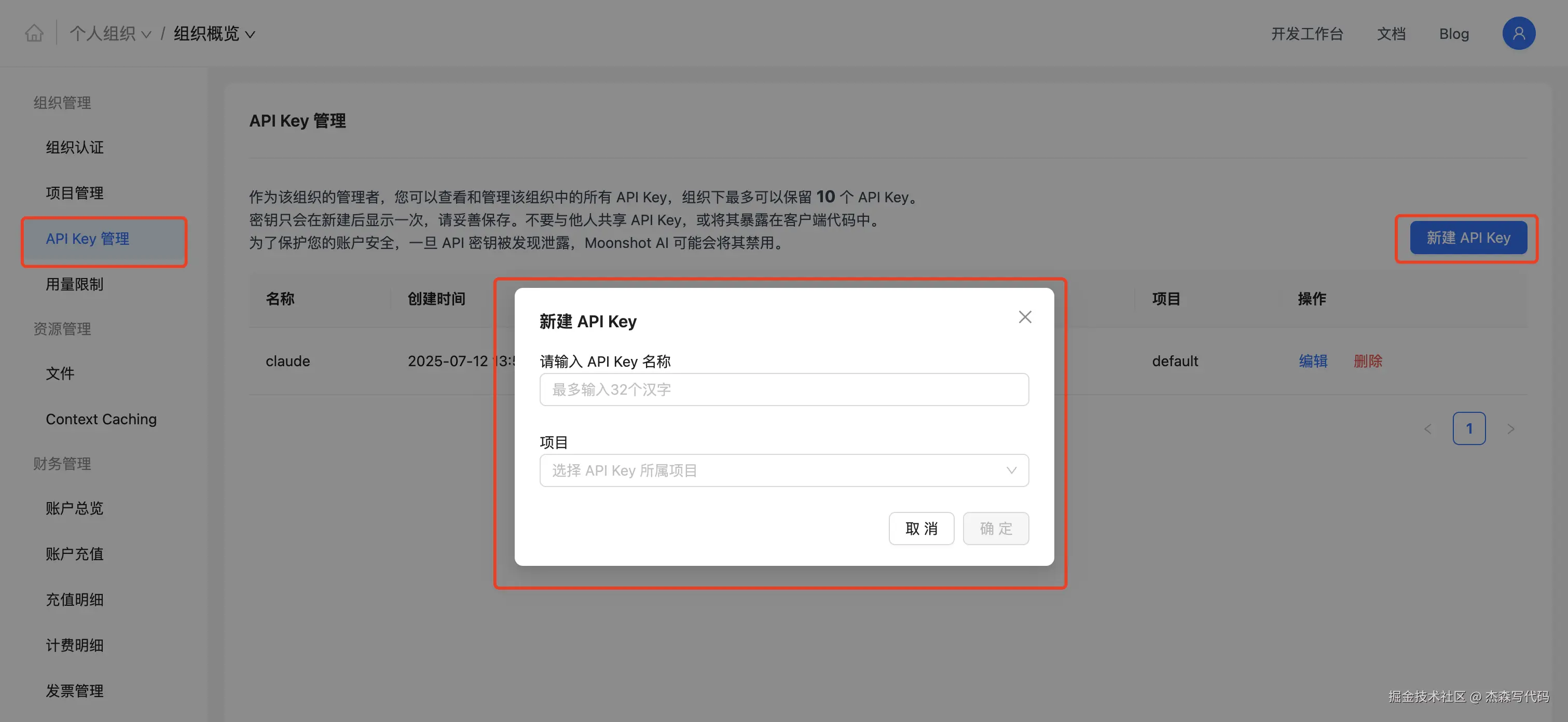 1. 先去月之暗面的开发者后台申请 API Key,注册默认送 ¥15