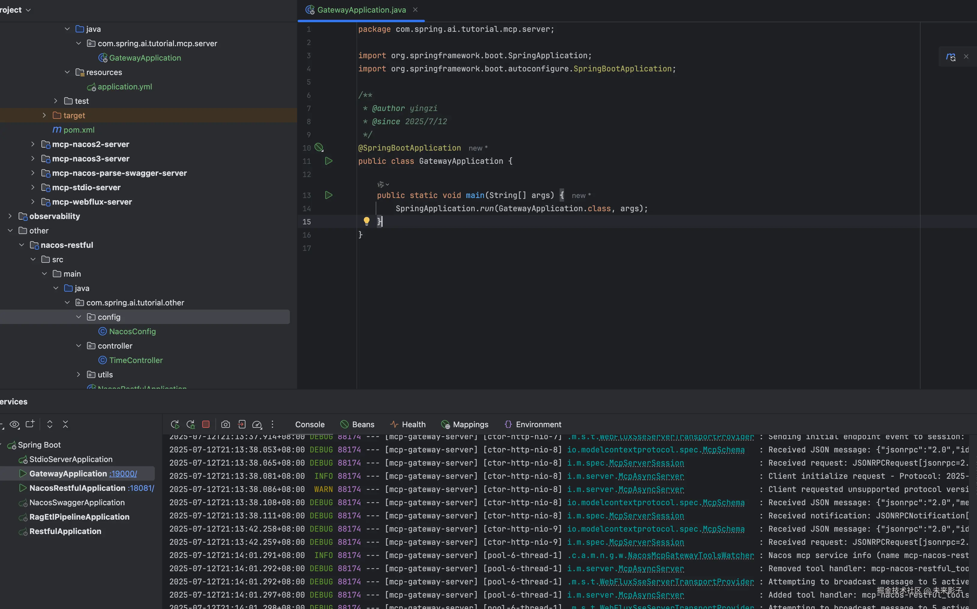 实战代码可见:github.com/GTyingzi/sp… 下的 other 目录下的 nacos-restful 模块、mcp 目录下的 server 目录下的 mcp-gateway 模块
