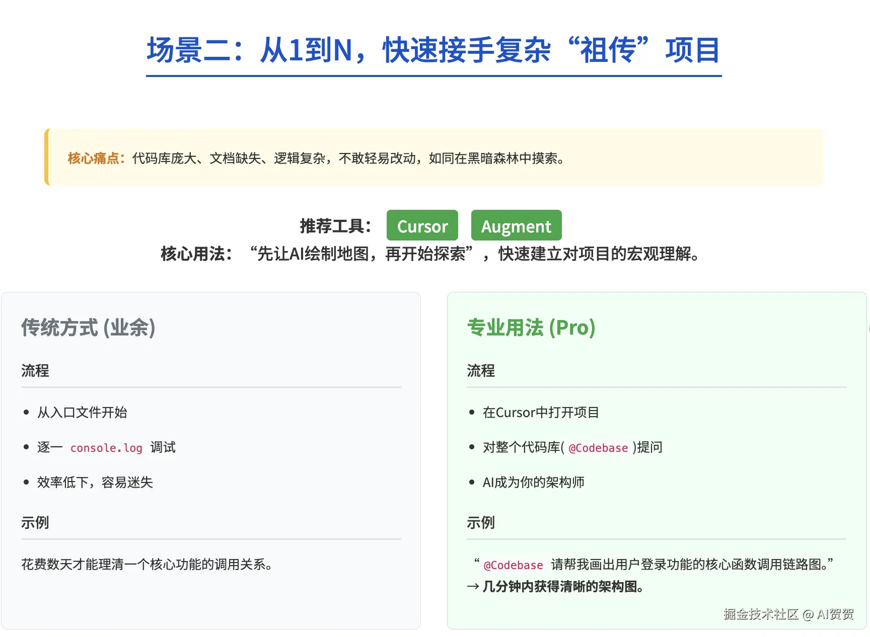 AI不会主动告诉你代码有安全漏洞、架构不合理或存在性能瓶颈。但它能出色地回答专业开发者提出的、基于深度知识和经验的深刻问题。提出正确问题的能力,正是我们多年经验积累下来的核心资产,也是AI无法替代的。
