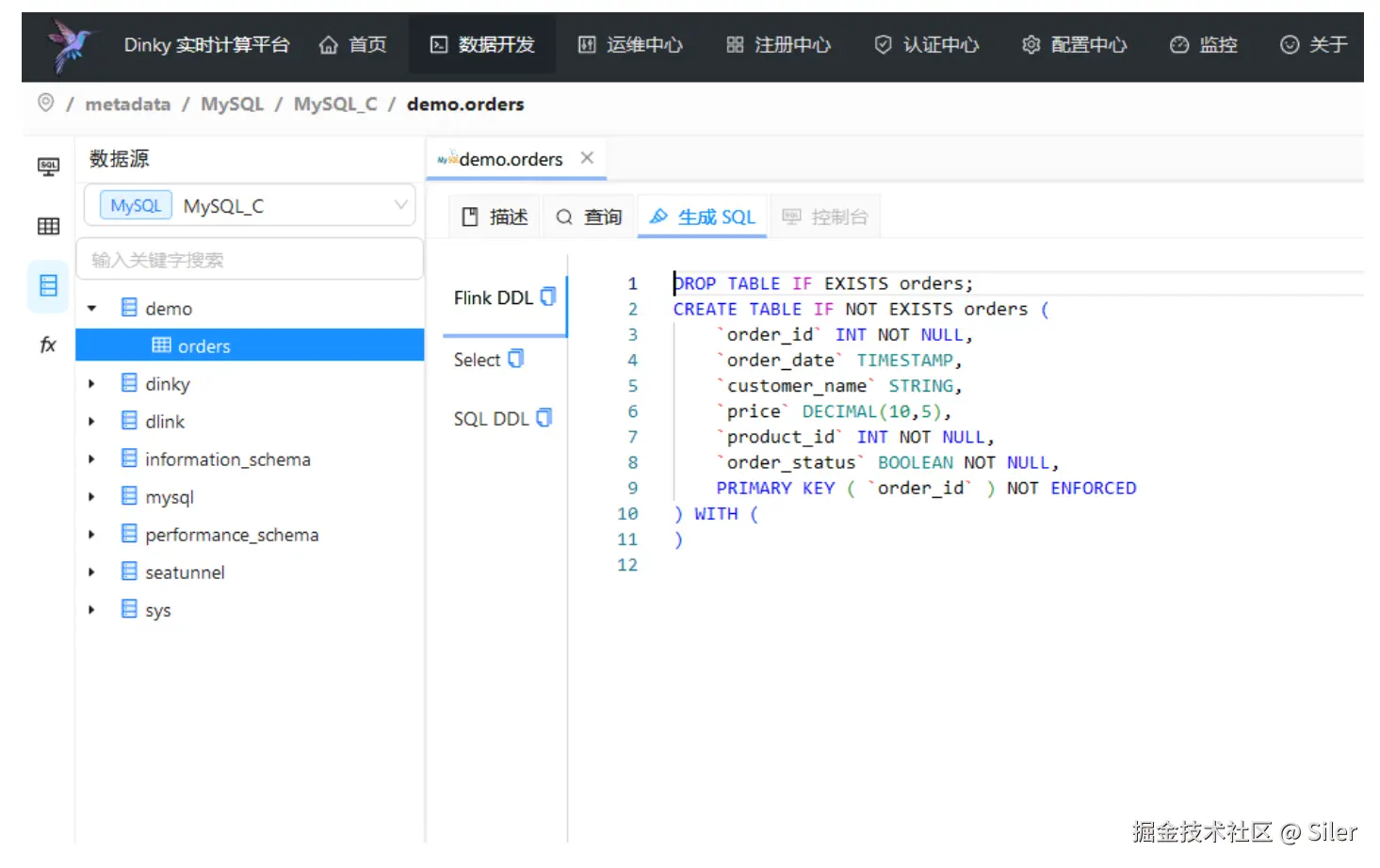 MySQL数据库:推荐的一种方式,由Dinky在SQL目录下定义。