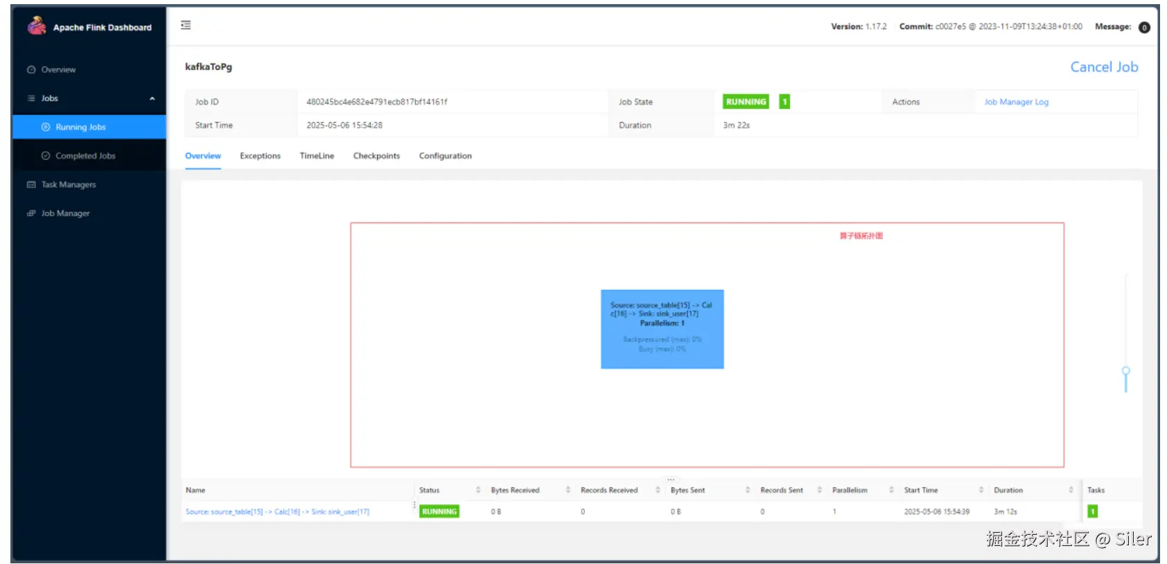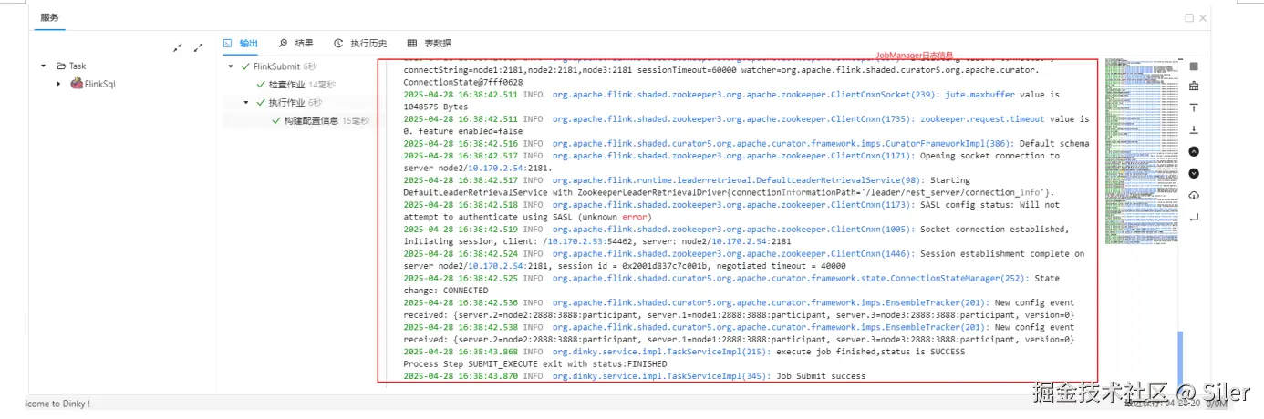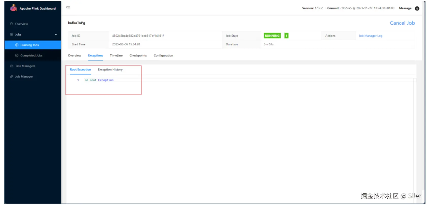 最重要的是查看作业日志,分为三栏:Excepion、JobManager、TaskManager。