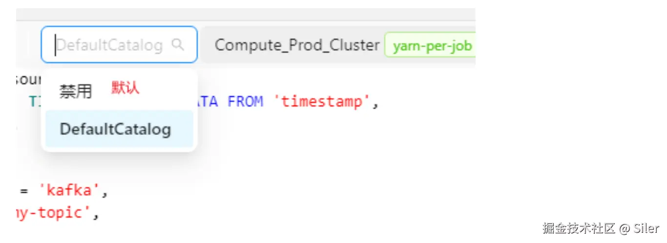 是否开启元数据持久化,默认是禁用,如果需要使用,可以将过程化产生的数据表持久到数据册中,默认这个DefaultCataLog是基于内存的,所有在使用过程中需要特别注意。