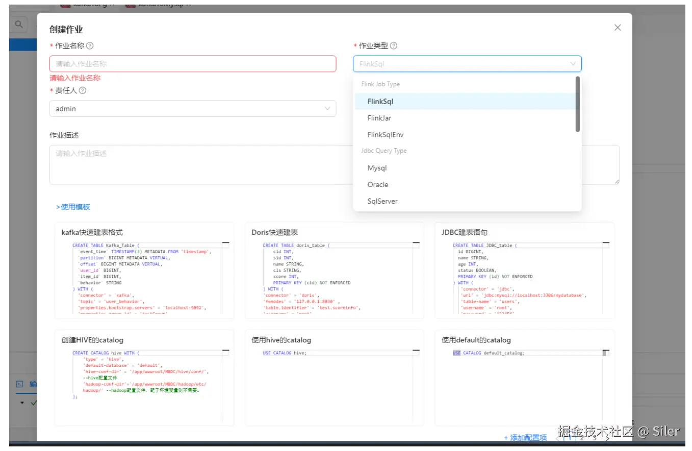 在Flink作业进行创建时,可以提供一些预设信息,生成flink代码时,无需再次填写。