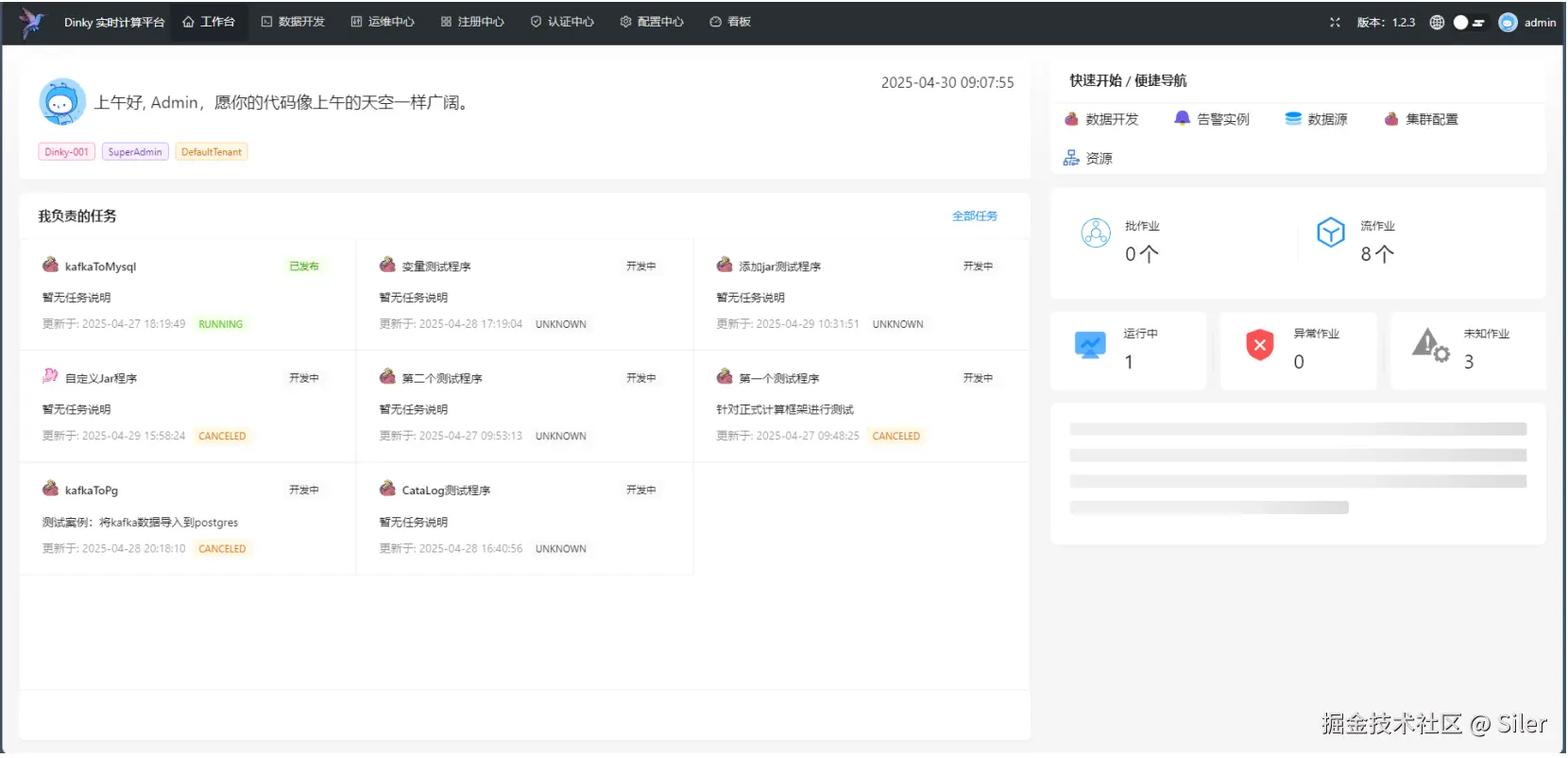 Dinky 是一个开箱即用、易扩展,以 Apache Flink 为基础,连接 OLAP 和数据湖等众多框架的一站式实时计算平台,致力于流批一体和湖仓一体的探索与实践。 致力于简化Flink任务开发,提升Flink任务运维能力,降低Flink入门成本,提供一站式的Flink任务开发、运维、监控、报警、调度、数据管理等功能。