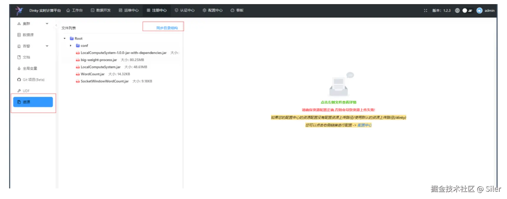 如果想使用jar程序,需要dinky平台能够识别jar包的路径,dinky注册中心有资源加载页面。