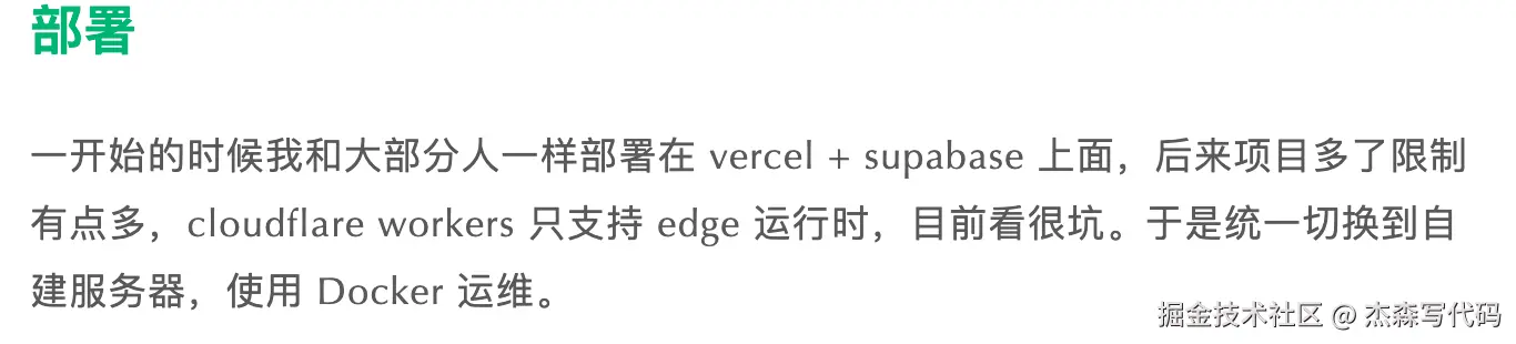 在文章里面我提到了我放弃 Vercel + Supabase,选择自建服务器自己运维。